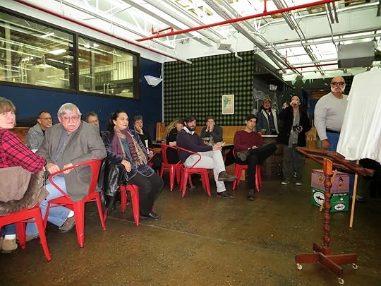 Linda also invited me to spend a weekend in Delaware, the weekend of December 13-14, leading a group of poets in a workshop. I happily agreed. I drove to Delaware on Friday, was kindly put up in a hotel by the group of poets, and then spent three hours each on Saturday and Sunday with the best group of poets I’ve ever worked with, sixteen of them. We met in a spacious room in one of the Rehoboth Art League buildings.
