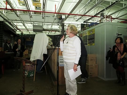 Saturday night was the announcement of the contest winner and presentation of his book. This event was held at the Dogfish Head Brewery in Milton, Delaware. It’s a real brewery, with all kinds of craft beers, a bar, tours, and a food truck. Since it’s located about 30 minutes away, one of the group members picked me up and another one drove me back to my hotel. Apparently, the owners are big poetry fans and have supported this contest for years. They gave a nice bag of goodies to me and to Gerry who also attended. We both joined the winner in a reading. Gerry read first and then me. Then Linda announced the winner: Lucian Mattison of Norfolk, Virginia. The evening ended with a reading by Lucian, the presentation of his prize which included a check and two cases of beer, and a signing of Lucian’s book, Peregrine Nation, published by Broadkill River Press.