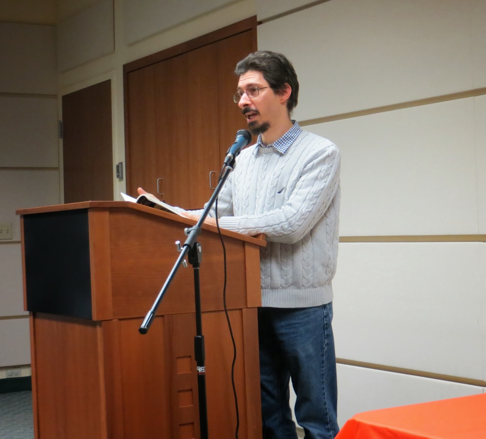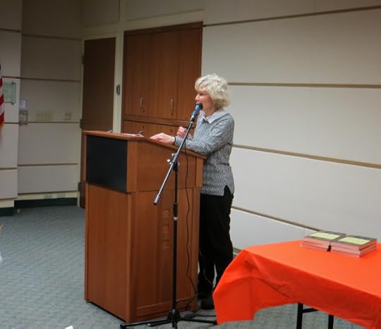 The book launch reading for The Crafty Poet: A Portable Workshop was held on Sunday, November 10, at the West Caldwell Public Library. We had a perfect day for it and a heart-warming turnout. A total of seventeen poets came to read. Here are some photos, in the order of the reading. I used the structure of the book to structure the reading.