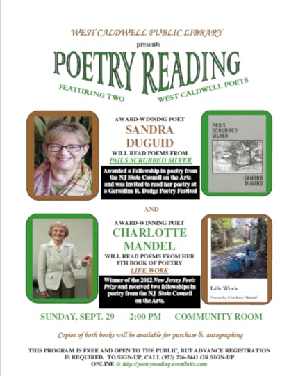 Charlotte Mandel is our guest today for the Poetry Salon. Her new collection of poems, Life Work, is her eighth book of poetry. Her previous books of poetry include Rock Vein Sky and two poem-novellas of feminist biblical re-vision— The Life of Mary, and The Marriages of Jacob. Charlotte began writing poetry in midlife, went back to school and earned her MA. She founded and coordinated the Eileen W. Barnes Award for older women poets and edited the anthology, Saturday’s Women. She recently retired from teaching poetry writing at Barnard College Center for Research on Women. Her awards include two fellowships in poetry from the New Jersey State Council on the Arts, the Woman of Achievement Award from NJ Business and Professional Women, and the 2012 New Jersey Poets Prize.