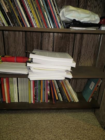 That pile in the middle is all the previous print-outs. Obviously, I've gone broke on paper and ink cartridges. That pile does not include the finished manuscript.