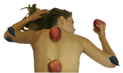 I found some leaves in Picnik and added them to the elbows as camouflage. That worked fine as the leaves fit in with the leaves on the apple tree.