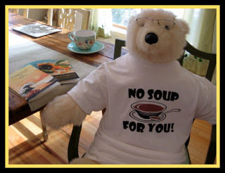 Don't forget to enter the Free Book Giveway at Jama Rattigan's blog, Alphabet Soup. Jama is giving away a signed copy of her children's book, Dumpling Soup, a copy of my poetry book, Temptation by Water, and a t-shirt. All you have to do is go to the feature of my poem, No soup for you!, and in the Comments section leave the name of your favorite soup. How easy is that! Giveaway ends on Monday, February 28.
