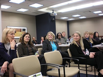 I took this picture as the room was filling. Those empty chairs were soon filled. That's my daughter in the front row. And yes, there are some guys at the back of the room.
