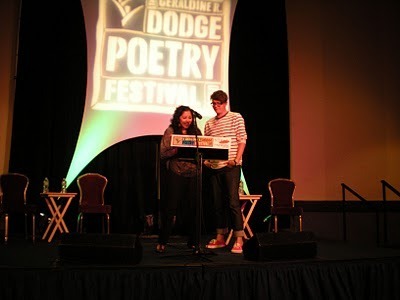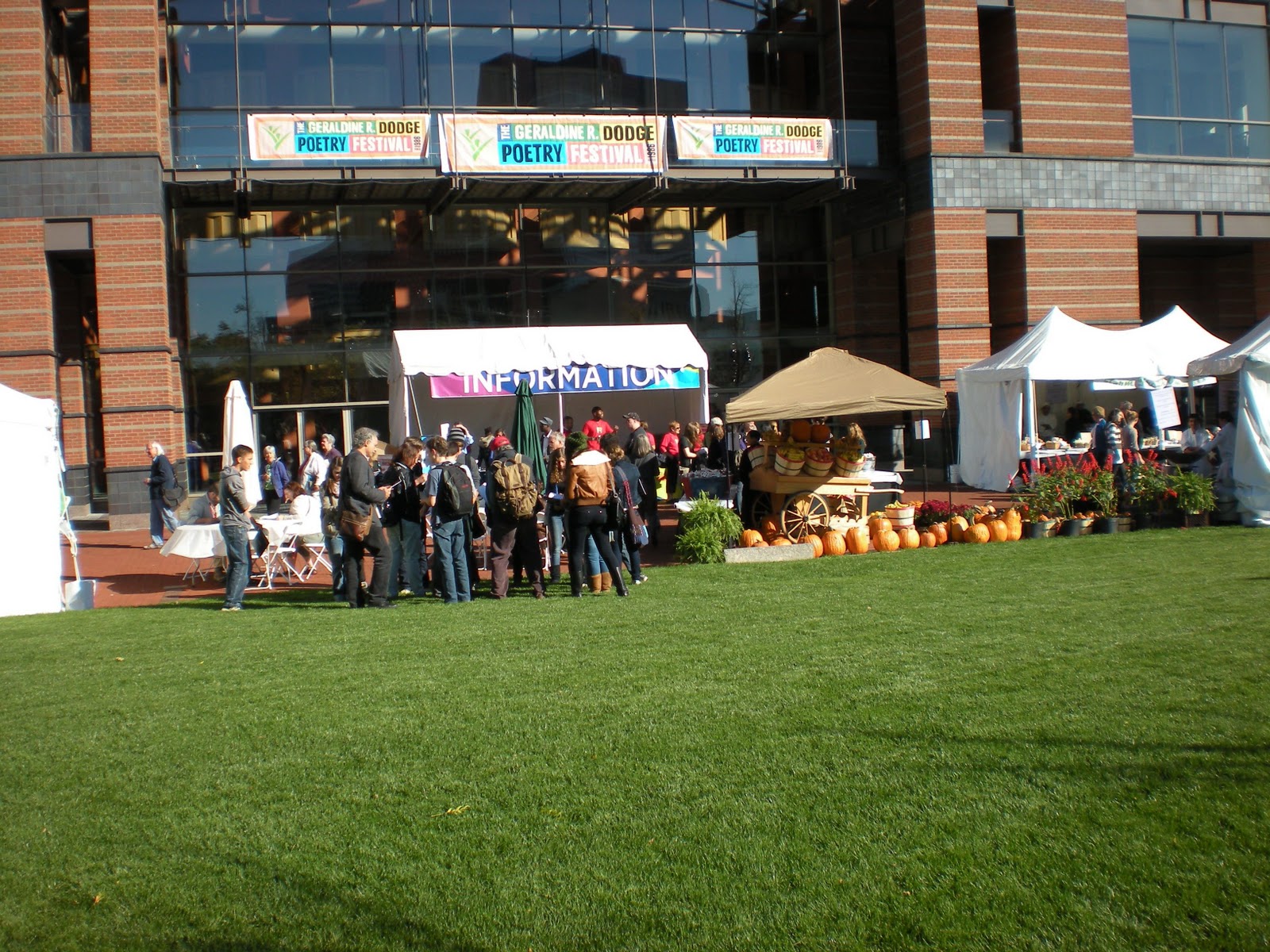 This past weekend I attended the Dodge Poetry Festival. I was part of the staff so had several assignments throughout the three days. Not as thrilling as reading at the festival, but I had a really good time. In fact, I was rather surprised as I wasn't at all sure what the festival would be like in its new venue. In the past when I've worked at the festival, I've been provided with a hotel room, but this time, because of a tightened budget, I had to commute. I stressed over the drive and the parking for days! Needlessly. The drive was easy and the parking was a breeze. I wasn't happy about having to pay for parking, but at least I got into a lot right across the street from the NJ Performing Arts Center and even managed to get the same exact spot all three days.