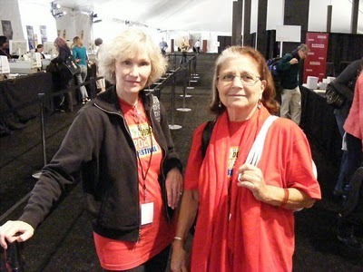 As always happens at the festival and part of the fun, I ran into tons of people I know but never see. I also met some people I'd known by name only. Each time I went from one place to the next, I stopped and chatted several times along the way. In this new location all of the reading venues were indoors, so no stomping through mud or squishy grass as has sometimes happened at Waterloo (though with the weather this year, Waterloo would also have been lovely outdoors). And what an improvement in the bathroom situation. There were ample bathrooms in all the buildings. Any lines that developed moved quickly. The bathrooms were clean and the floors were dry.
