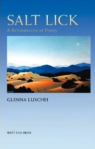 Glenna: I think in order to compile a retrospective such as Salt Lick you must work with an editor or friend who has known you for a long time and watched your development. I had that good luck with John Crawford of West End Press in Albuquerque. I lived in Albuquerque forty years ago, even before he moved there, but we had the same friends and knew the same terrain. I fell in love with the desert and the high, dry mesa of Albuquerque. I grew up in Iowa which produced the best crops in the world but also the hottest summers and the coldest winters. Someone was always sick and that person got to recover in the sick room which was the story and poetry room. Some of my poems in Salt Lick were started in the sick room seventy-five years before.