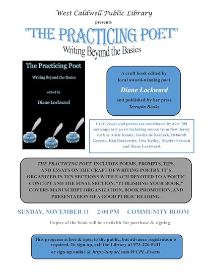 Please join us for the book launch of my new book, The Practicing Poet: Writing Beyond the Basics. Nine poets will be present to read and discuss their contributions to the book. Q&A. Delicious cookies will be baked by me for the Reception that follows the Reading/Presentation. Everyone is invited to consume the cookies and talk with the poets.