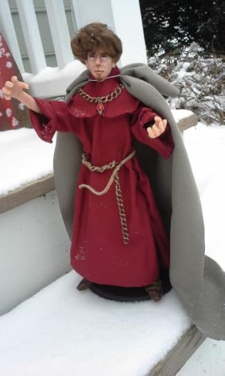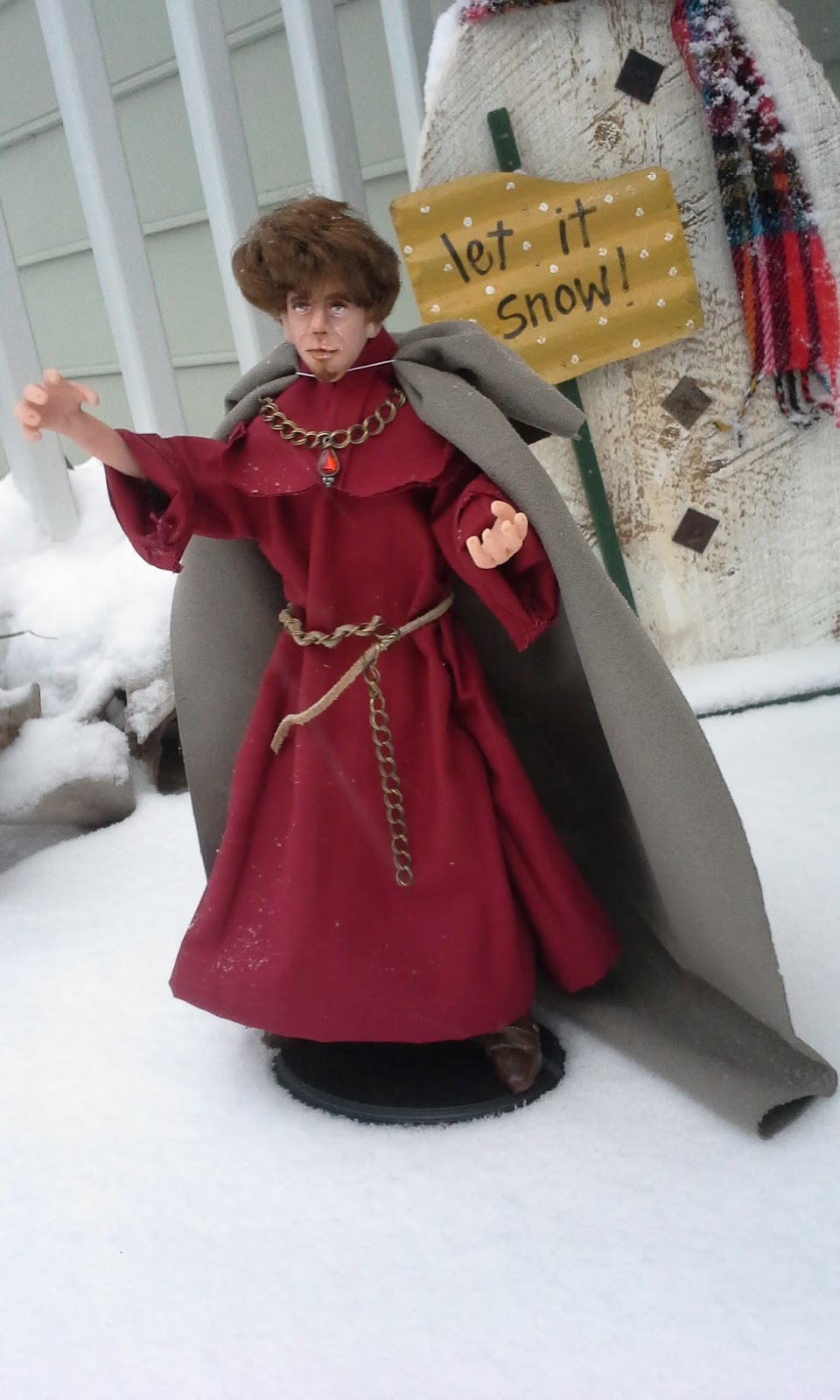 Finally finished him, and doesn't he go well in the snow! Character from book four "No'va" - Shafari. I wanted his clothing fairly simple, though I might add some embroidery later on. I picked up this really pretty multi-color thread that just went so well with the crimson robe.