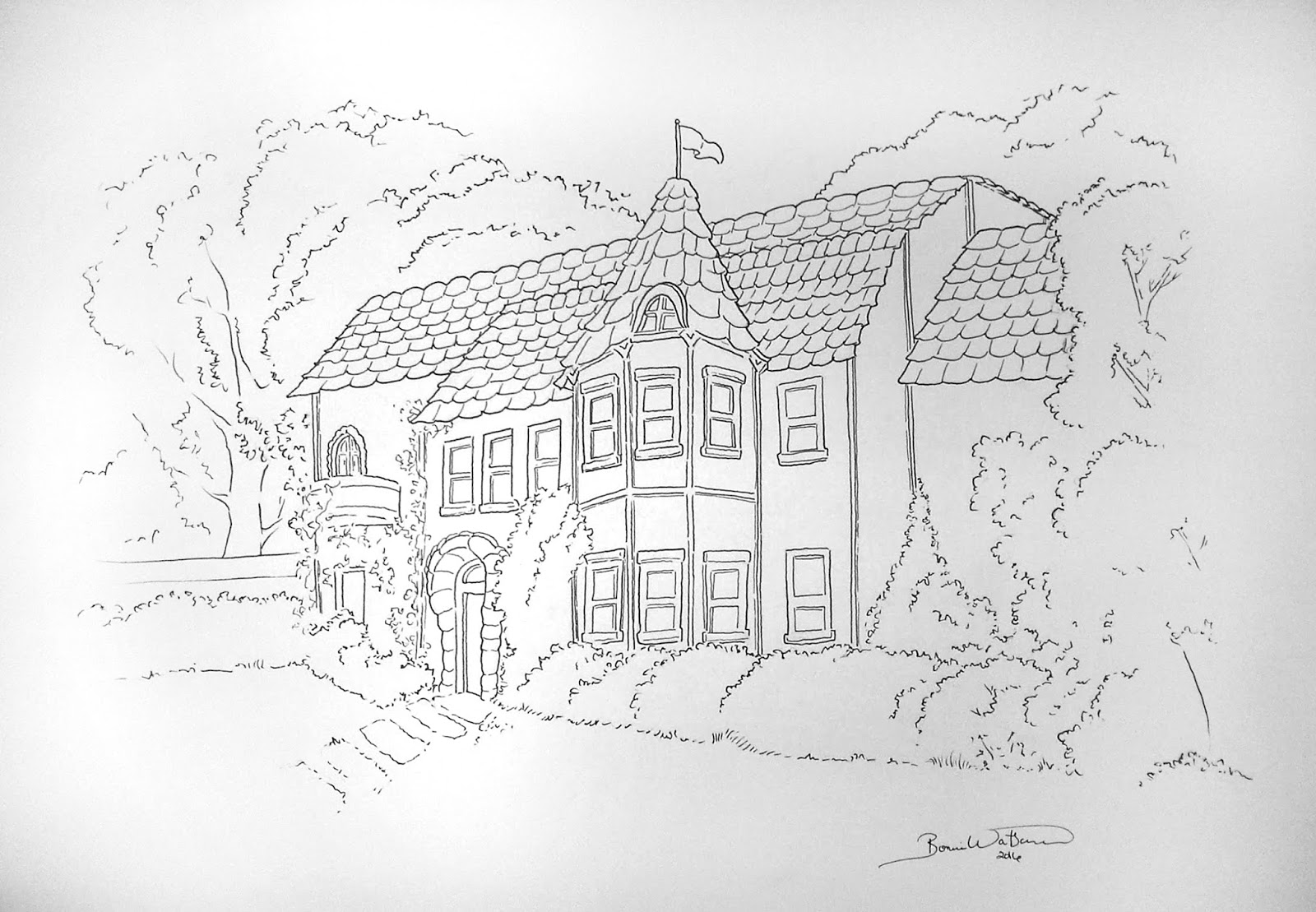 So based off of what I've learned drawing the churches in pen and marker, I decided to try my hand at the Eastern Clan as written in the novel. I don't go into great lengths of description, but this is what it could look like.
