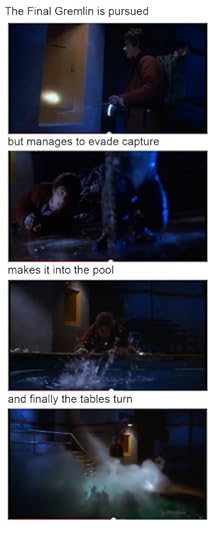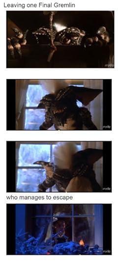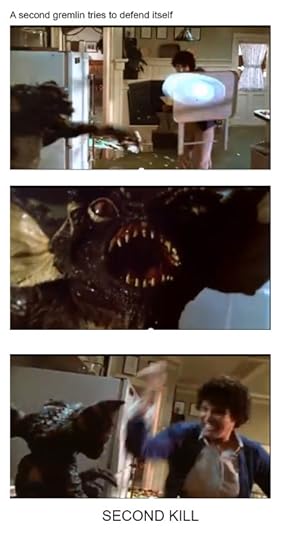 Gremlins is a slasher film where Billy Peltzer and his mother are the maniac killers. Four gremlins are gruesomely murdered. Spike is the Final Girl who escapes with his life, and finally manages to turn the tables on the humans.