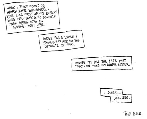 I’m all for us moving past this Myth of the Heroic Daily-Drawer Cartoonist, the guy who works every day, and amazes us all with his prolific output. I’m all for living a little life in between trying to write about it.