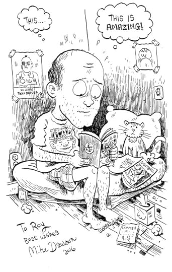 Keeping on the theme of thinking ahead to TCAF and other comics festivals, something I’m considering offering are personalized sad-sack drawings, where I will draw a lovely pen and ink portrait of you looking like a mopey navel gazing autobio cartoonist. Here’s a drawing I did of my friend Roy wearing his favorite MAD Magazine t-shirt.