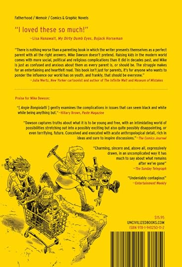 Though it’s billed as “the modern father’s guide to good parenting,” anyone demanding clear answers on parenting will only find more questions in Dawson’s (Troop 142) short comic pieces presenting contemporary issues around raising a child. Some directly relate to the topic, such as the title story. Others take a more philosophical journey covering the larger political and social concerns affecting personal lives. Dawson’s sharp piece refuting the idea that Americans love an underdog was a mild viral hit when it was released on Medium, and rightly so, but that’s just the tip of a sometimes bleak iceberg. Also effective are chapters, all drawn in a loose cartoony style, imagining his own family surviving the climate-change-induced breakdown of civilization and thoughts on guns and Christmas. If he sometimes seems helpless against the universe, Dawson still channels the parental zeitgeist, as shown in his suggestion that the one good choice is to raise thoughtful children who understand reality. (May)