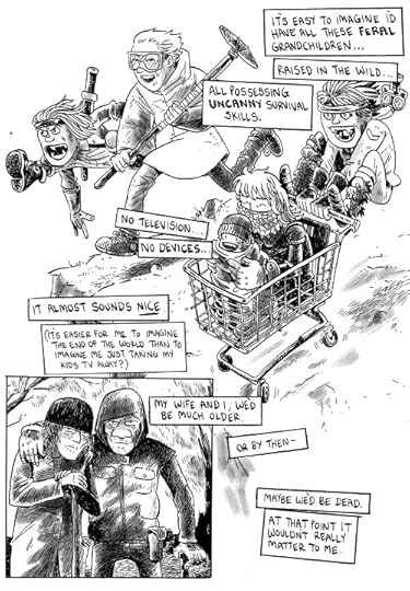 This is a 136 page book of comic essays, taking a look at Modern Fatherhood through a variety of lens. What does it mean to be a “Feminist Father”? It’s easy enough to like the sound of that, but what does it really entail? How can you raise children responsibly in such an uncertain world? What kind of future are you really envisioning for them?