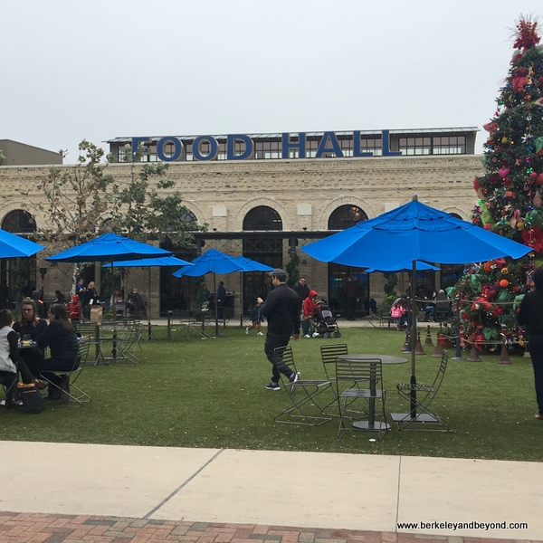 * Bottling Department Food Hall 312 Pearl Pkwy, in The Pearl. Sun-Thur 8am-9pm, F-Sat 8am-10pm. Some of the food booths in this bustling food hall offer the option of sitting at a bar at the booth itself, but mostly diners find an open table in the interior or outside by the grassy central courtyard, where children can play in a water feature and playground. A vibrating pager lets you know when the order ready. Foods specialties include burgers, chicken, ramen, donuts, beer, and more.