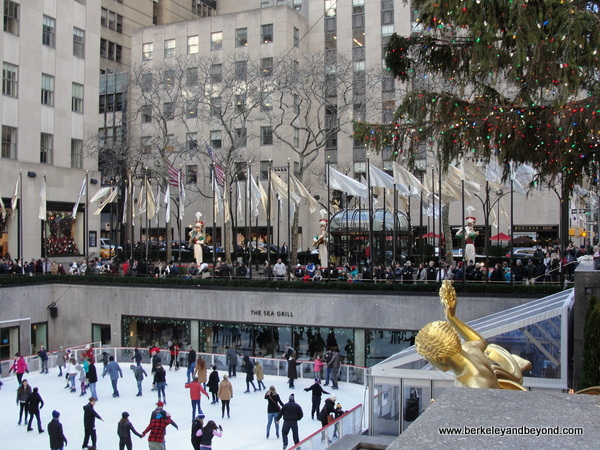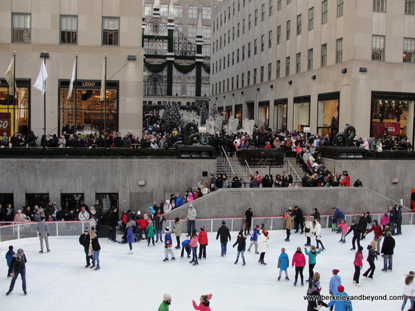 Rockefeller Center 600 Fifth Ave. Christmas central in NYC seems to be the ice skating rink at Rockefeller Center and its 80-foot-tall tree decorated with 45,000+ lights. The first Christmas tree was lit here in 1933, and today more than half a million people see it each day. The Rockettes kick up their heels nearby at Radio City Music Hall, and the big department stores display their magnificent decorated windows along adjacent Fifth Avenue. And this year FAO Schwarz is making a comeback with a new store here, complete with the famous clock tower and also a giant piano keyboard like the one Tom Hanks played in “Big.”