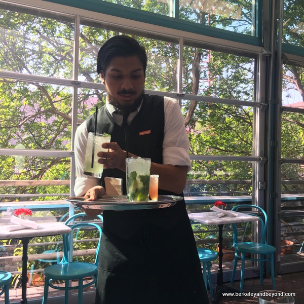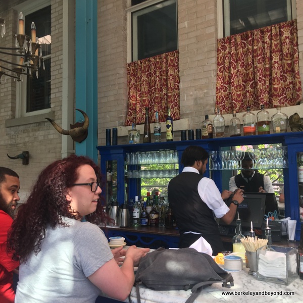 Set in a gorgeous, high-ceilinged glass conservatory overlooking the River Walk, Ocho features aqua-colored trim and plenty of light. An outdoor area adjoins. The hotel’s restaurant offers a Latin menu and is open for breakfast, lunch, dinner, and late-night snacks, as well as for afternoon drinks. Cocktails include a Margarita, a Mule, and an ice cold Michelada--plus the best Mojito I have ever had the pleasure of imbibing.
