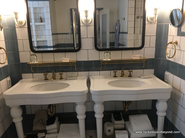 Spacious guest rooms feature dark wood details and high ceilings, and each is outfitted with custom-made white linens and a unique eclectic decor. Rooms also feature vintage fixtures, luxurious Red Flower bath amenities, and sweet vintage SMEG mini-bar refrigerators in various colors--including pink--that are filled with favorite local foods and drinks.