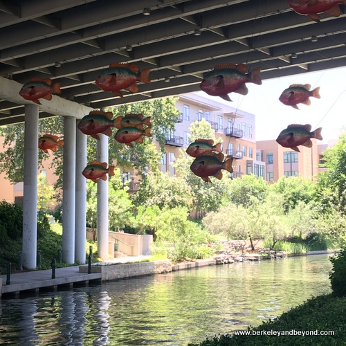 You can walk to or from here easily from The Pearl via the River Walk pathway. It take about 10 minutes. On the way you’ll view more art installations. On the west side of the river, “The Grotto,” by Carlos Cortes (2009), consists of a cave-like installation with water falls and a hidden grotesque face. A school of fish also enhances the walk.