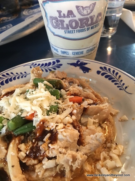 *La Gloria 100 E. Grayson St., in the Pearl, (210) 267-9040. L-D daily. Dedicated to celebrating the tasty street foods of Mexico, this cheery spot serves up a varied menu. A good start is the molcajetes--a super-hot bowl of melted Mexican cheeses with salsa mixed in that is prepared dramatically at the table, then diners spoon it into tortillas. Two of those plus one sope and I was good to go. Panuchos topped with a sort of salad are also very good. Tacos are small and come three to an order. Quesadillas, tostadas, tortas, and ceviches are also available. Drinks include aguas fresca, beer, and margaritas in many varieties.