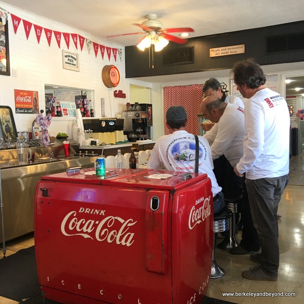 ●MidPoint Cafe and Gift Shop 305 W. Historic Route 66, in Adrian, (806) 538-6379. Daily 8:30am-5pm. Located at the exact midpoint of the Route 66 journey, this cafe measures 1,139 miles to starting points in L.A. and Chicago and makes the perfect stop for refreshment. Because the pies are made fresh daily on site, they are really good--I had a chocolate cream that was divine. Patrons can help themselves to a coke from the fridge and pay at the counter. Comfy booths and a swivel-stool counter are among the seating options. And the gift shop is loaded with souvenir items that you might actually want.
