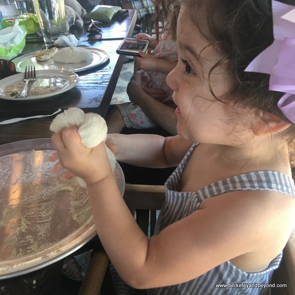 ● Dough Pizzeria Napoletana 518 S. Alamo St., (210) 227-2900. Situated adjacent to the sand box, this popular spot serves exceptional fare in a casual setting. It’s a great place to retreat to on a hot day. Most everything is made in house, including cheeses and drink flavorings. Frozen wine slush cocktails have included a peach Bellini and a prickly pear-lime granita, and it’s hard to beat the superb cherry ice cream soda. We started with the house signature “truffle burrata” that was as lovely as it was tasty, a simple Tuscan salad, and some warm marinated olives with olive oil-soaked toast. So good. Delicious artisan pizzas with crispy blistered crust are prepared here in a tarted-up wood-burning oven covered with copper pennies. The pizzas are cooked for 90 seconds at 900 degrees. For our vegetarian feast, we devoured a Neapolitan-style Fontina pizza with mushrooms and sweet caramelized onions as well as a simple Margherita. Brilliantly, kids are kept busy with their own ball of dough to play with. I can’t wait to return for more.