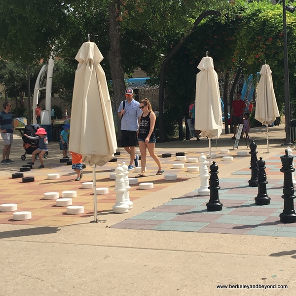 ●Yanaguana Garden 434 S. Alamo St. Free. The new Yanaguana Garden section features a playground, a splash pad, a giant chess board, a giant sand box, and an inexpensive paleteria dispensing fresh fruit popsicles.
