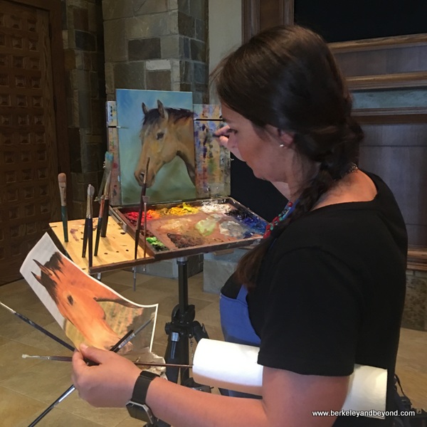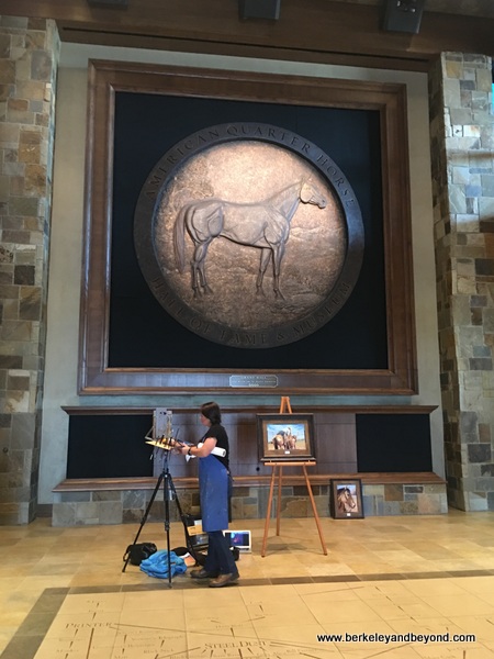 Unleash your inner cowboy at this very focused museum dedicated to the heritage of the horse that is so vital to the American West. Some say that our country was built on its back, and that it is “the horse that settled the west.” The quarter horse got its name from being the fastest horse at running the quarter mile, and with its long legs and a long lean body it is the ballerina of the horse world. This largest equine museum in the world is designed to preserve and display the history and modern uses of the quarter horse breed as well as to cultivate future enthusiasts. It showcases the people that have changed and shaped the breed and the horses that have brought it fame. Well-staged exhibits explore the link between American and Mexican horse culture, a video includes demonstrations and relevant cowboy culture, and a children’s gallery has an old-time kiddie horse ride. An arena outside sometimes schedules demonstrations with real horses. When I visited, artist Sarah Harless was in the massive Entry Hall, engaged in making a horse painting. She was almost finished when I left.