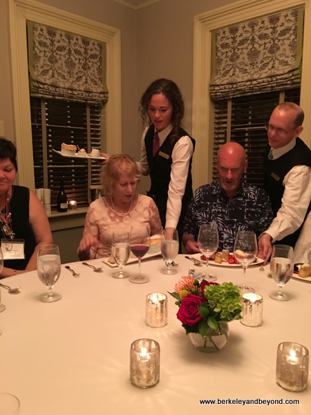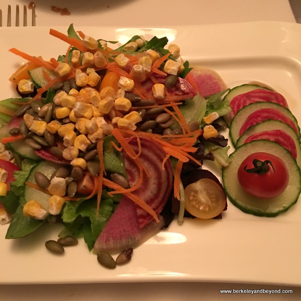 Circa 1886 149 Wentworth St., Harleston Village, (843) 853-7828. Considered by many to be the best restaurant in Charleston, this sophisticated and charming restaurant is in the former carriage house that is behind the stately Wentworth Mansion inn. It is romantic to the core, and food is inventive and service superb. The chef often sends out an amuse bouche to get things started--perhaps a pureed green soup. Among the appetizers are Broccoli Ricotta Gnudi (black truffles, saffron squash, and petite basil). I adored the simple Greens & Veggies with crispy corn, garlic, and pepitos. For my main I selected a beautifully presented Chimichurri Beef enhanced with parsnip potato mousseline, sweet little baby carrots, and coffee oil, while my husband chose the chef’s special Jerk Brined Antelope from Texas, enhanced with key lime grits, red cabbage and yam hash, and coconut curd. It is hard to imagine passing up a Peach Crisp Souffle for dessert, but other choices included a tempting Crispy Black Forest Bread Pudding and Strawberry Shortcake. Throughout, we enjoyed an exceptional Pinot Noir from Ken Wright Cellars in Oregon’s Willamette Valley. This dinner was absolute perfection.