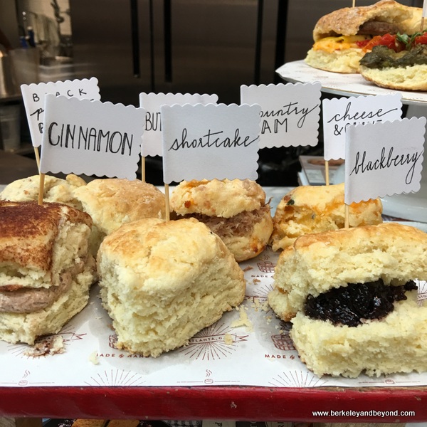 ● Hot Little Biscuit 188 Meeting St., (843-577-8900. Sweet little handmade Southern dinner biscuits featuring a variety of fillings are hard to resist. And because they are small, you don’t need to. (When you get home, make your own cream biscuits using my recipe, which I think is even better.