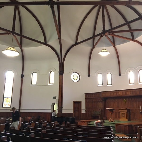 ● 5 Church 32 N. Market St., Ansonborough, (843) 937-8666. L M-F, D daily, Sat-SunBr. Situated within a former church that was desanctified in the 1960s, this unusual venue provides the opportunity to dine in a massive room with beautiful stained-glass windows. The high ceiling was hand-painted by artist John Norris with Sun Tzu’s “The Art of War” written out in its entirety (his wife read the book to him while he wrote on the ceiling.) It took four months to complete and is a breathtaking sight to contemplate. The sophisticated-yet-casual decor includes a white concrete bar, black leather banquettes, and elaborate chandeliers. A more intimate dining room and outdoor patio adjoin. The innovative New-American cuisine menu includes a delicious Lamb Burger with gorgonzola fondue and a sweet Crispy Chicken Roulade. A variety of signature steaks and seafood are also options. The full bar serves up some tasty cocktails, including the mai tai-like Lucky of the Irish, which consists of pineapple, orange juice, lemon juice, orgeat, and Jameson whisky. I downed two with no trouble. More restaurants in former churches.