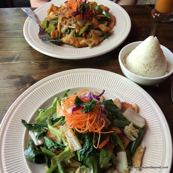 Sompong Thai 37-09 83rd St., (718) 899-8424. L-D daily. Featuring a lovely decor with natural wood walls and atmospheric decor, this tiny spot (only 6 tables) is perfect for a quiet meal. Lunch specials are a great deal and include soup or salad and a spring roll. We shared sautéed tofu with basil sauce and Drunken Noodle--sautéed flat rice noodles with mixed vegetables and a special sauce. The portions were generous enough that when a friend saw us and stopped in, we had enough left to let her have a mini-lunch, too. And to help us get through the day, we each ordered a regular Thai ice tea, though, if you really need a bigger jolt, a large version is also available. I hear the lychee and coconut juices are also delicious.