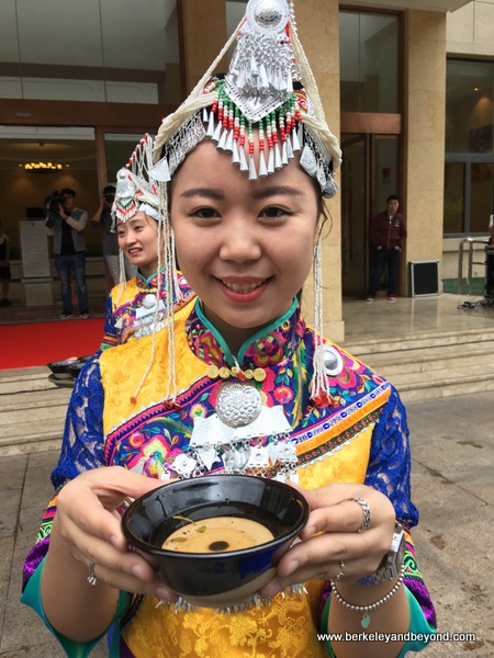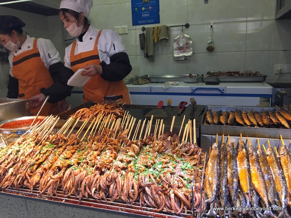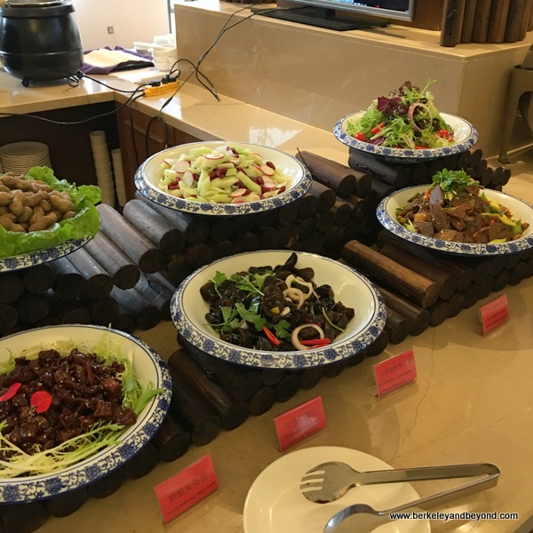 Meant to honor my American group, which was a peculiarity in the area, a sign indicating “Foreigners Section” was displayed in the dining room. It reserved for us a particularly comfortable area. Some of my favorite buffet items include kung pao chicken with giant hot peppers, peanuts in vinegar, boiled peanuts, and rice wine served in teeny glasses.