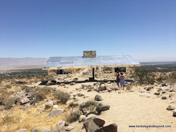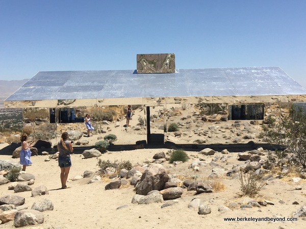 The site-specific Mirage house art installation by Doug Aiken is in the form of a ranch-style house but composed of reflective mirrored surfaces. Minus doors and windows, it reflects and disappears into the desert landscape. It is part of the “Desert X” art exhibition but will remain on exhibition after that closes on October 31, 2017.