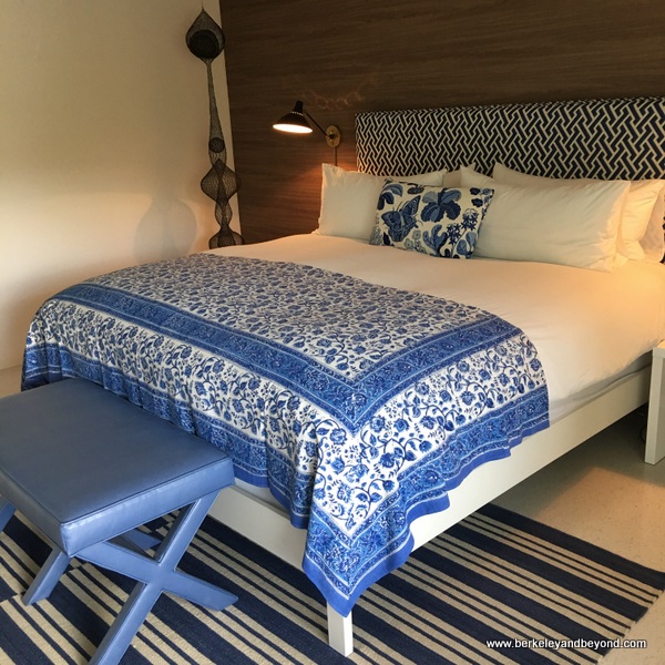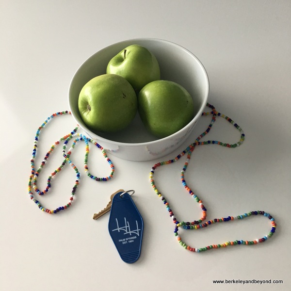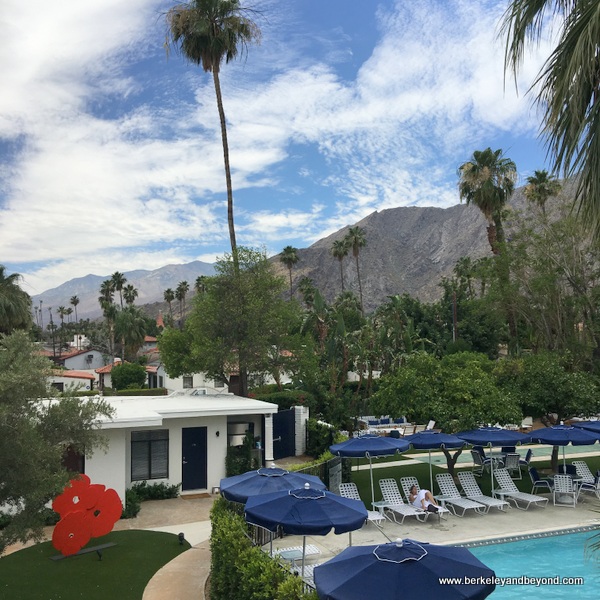 Holiday House 200 W. Arenas Rd., downtown, (760) 320-8866. 28 rooms. Age 21+. Pool; hot tub. Restaurant; breakfast included. No phones or TVs. Pets ok. Free parking. Resort fee $15/night, includes Wi-Fi, continental breakfast, and use of bikes. This two-story boutique hotel is well situated in a long-established neighborhood and is just one block from downtown central Palm Springs and just a few blocks from the base of the San Jacinto mountains. It has a beach-house-in-the-desert vibe that includes a beachy color scheme of blue and white. At check in, we were welcomed with a “love beads” necklace to wear during our stay and offered a complimentary glass of rose to enjoy at our convenience (we picked it up later from the open-air bar, in a plastic cup to sip in the hot tub). A large pool and hot tub dominate the center courtyard, and a shuffle board and several fire pits are adjacent. Refreshing misters are used throughout to cool things down. The property features midcentury-inspired elements and displays artwork that includes pieces by David Hockney, Roy Liechtenstein, and Mr. Brainwash. Most rooms have either a balcony or patio with charming but hard-to-get-in-and-out-of butterfly chairs, and six patios have a private outdoor shower. It is possible to turn off the AC for the night and open windows to the cool desert air, which also admits the sound of chirping birds in the morning. The simple continental breakfast buffet includes hard-boiled eggs, fresh fruit, yogurt, granola, and housemade bread that makes delicious toast. Holiday House’s sister property--Sparrows Lodge--is nearby. It is similar but with a ranch decor.
