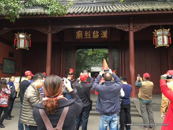 Located adjacent, the Wuhou Temple (Memorial Temple of Marquis Wu) is dedicated to Zhuge Liang, the Marquis Wu (Wuhou) of the Kingdom of Shu in the Three Kingdoms Period (220-280). Surrounded by old cypresses and classical red walls, it displays clay sculptures of Emperor Shu and his ministers standing together. The most valuable cultural relic is a huge 144-inch high by 37-inch wide stone slab monument (a stele) set up in 809.