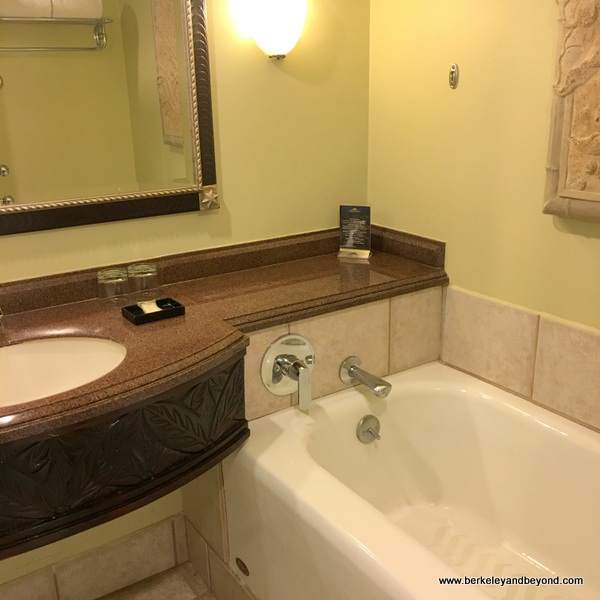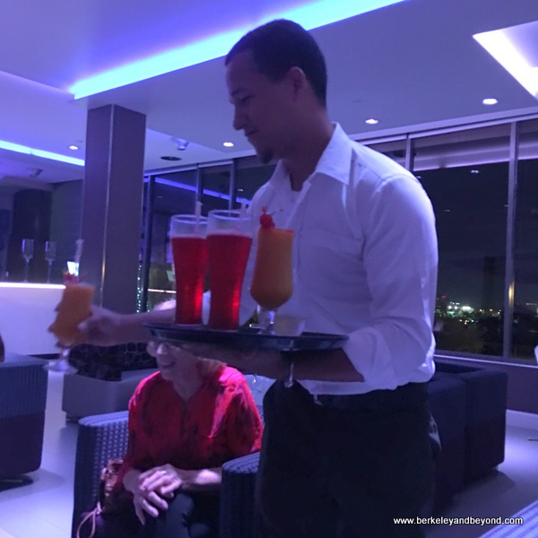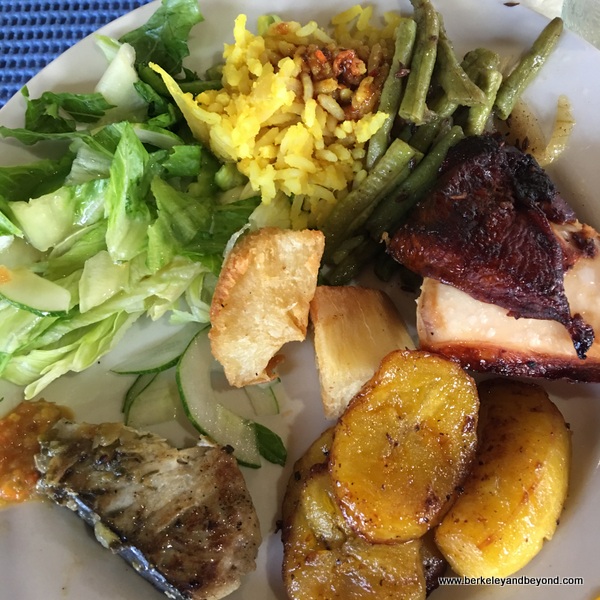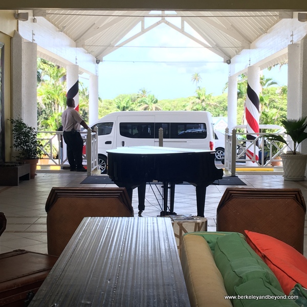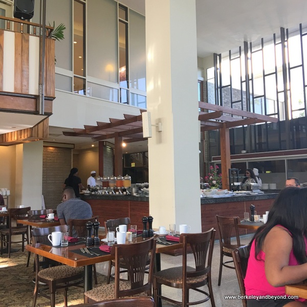 The Terrace Garden restaurant features three-story-high ceilings and glass walls looking out to the green pool landscaping. It is a delightful place for breakfast, when the buffet includes made-to-order omelettes as well as some local items--I became very fond of both the spinach-like calaloo made with dasheen leaves and the pumpkin choka fillings for fried bake breads--and an array of more familiar items.