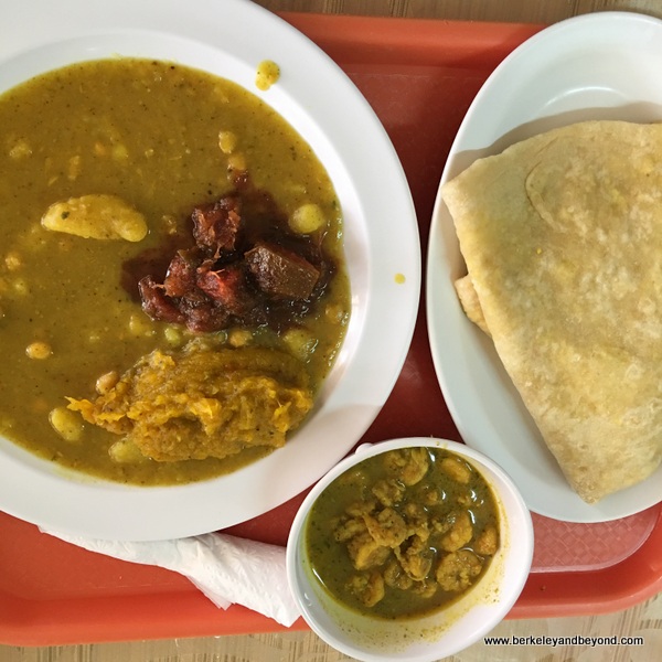 ●Highway Roti Shop in FREEPORT. With a range of curries from chicken to vegetarian and from mild to spicy, Indian cuisine in Trinidad offers a plethora of tasty street foods as well as simple restaurants and fine dining. Dishes are made with both traditional recipes and modern twists, perfuming the air exotically with cumin, ginger, coriander and more. At this roadside roti cafe, all fillings are curry and all meats are cooked with bones in for flavor. Goat and duck are the most popular, but I found the veggie garbanzo-tomato-potato filling to be superb. Here for 35 years, the kitchen knows what they are doing.