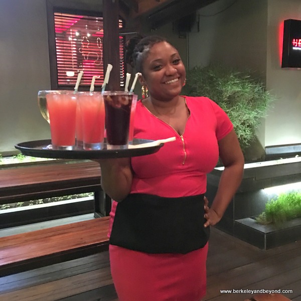 HAKKA 4 Taylor St., Woodbrook, (868) 33 HAKKA. With a trendy vibe that carries even into the restrooms, this spot is a place to see and be seen. The delicious fusion of Hakka Chinese recipes and Indian spices results in some delicious dishes. Good bets on the extensive menu include Konjee crispy chicken, spicy Hong Kong Pork, and prawn pakora. Making dinner outdoors on a pleasant patio in front even more wonderful, we were serenaded by an army of crickets that sounded like bells.