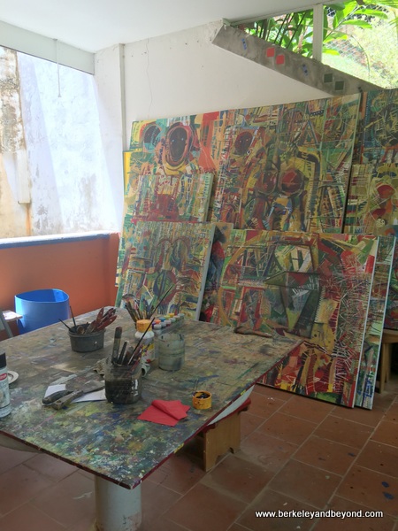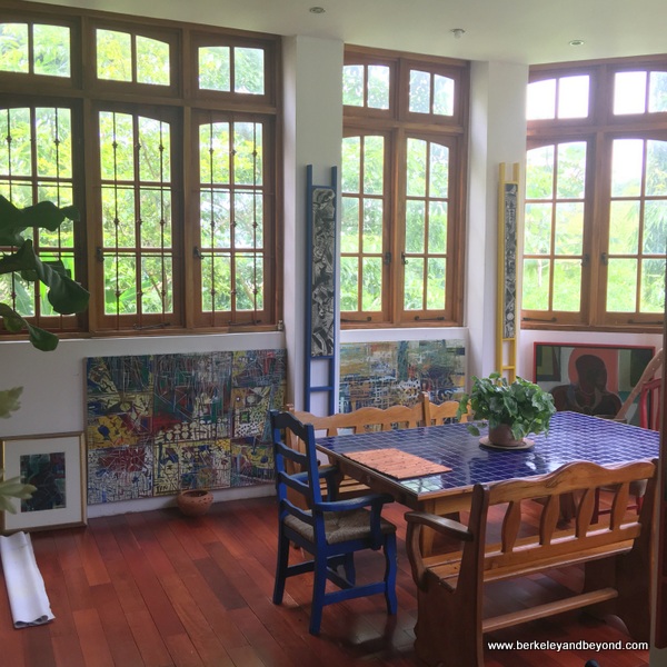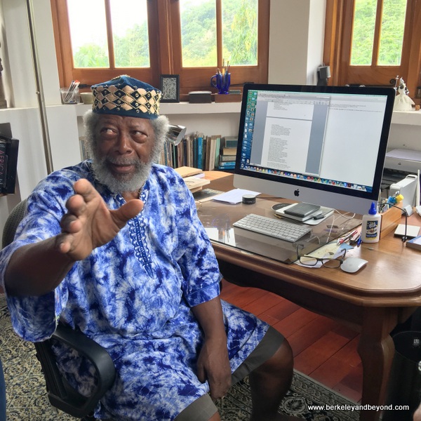 LeRoy Clarke home This popular contemporary native Trinidadian artist focuses on African art, and his paintings are usually very large. As like calaloo--a popular island stew--is how he describes the mix of races in Trinidad. Clarke is also a poet and, at age 78, has strong opinions, and so is loved by many and not so loved by others. He lives in a small gated community in De Legacy House of El Tucuche, which was built to his specifications and where he graciously welcomed my group of journalists into his private space. The soft-spoken artist says he uses his “sweet man voice around women,” and claims that he was the favorite of nine children.