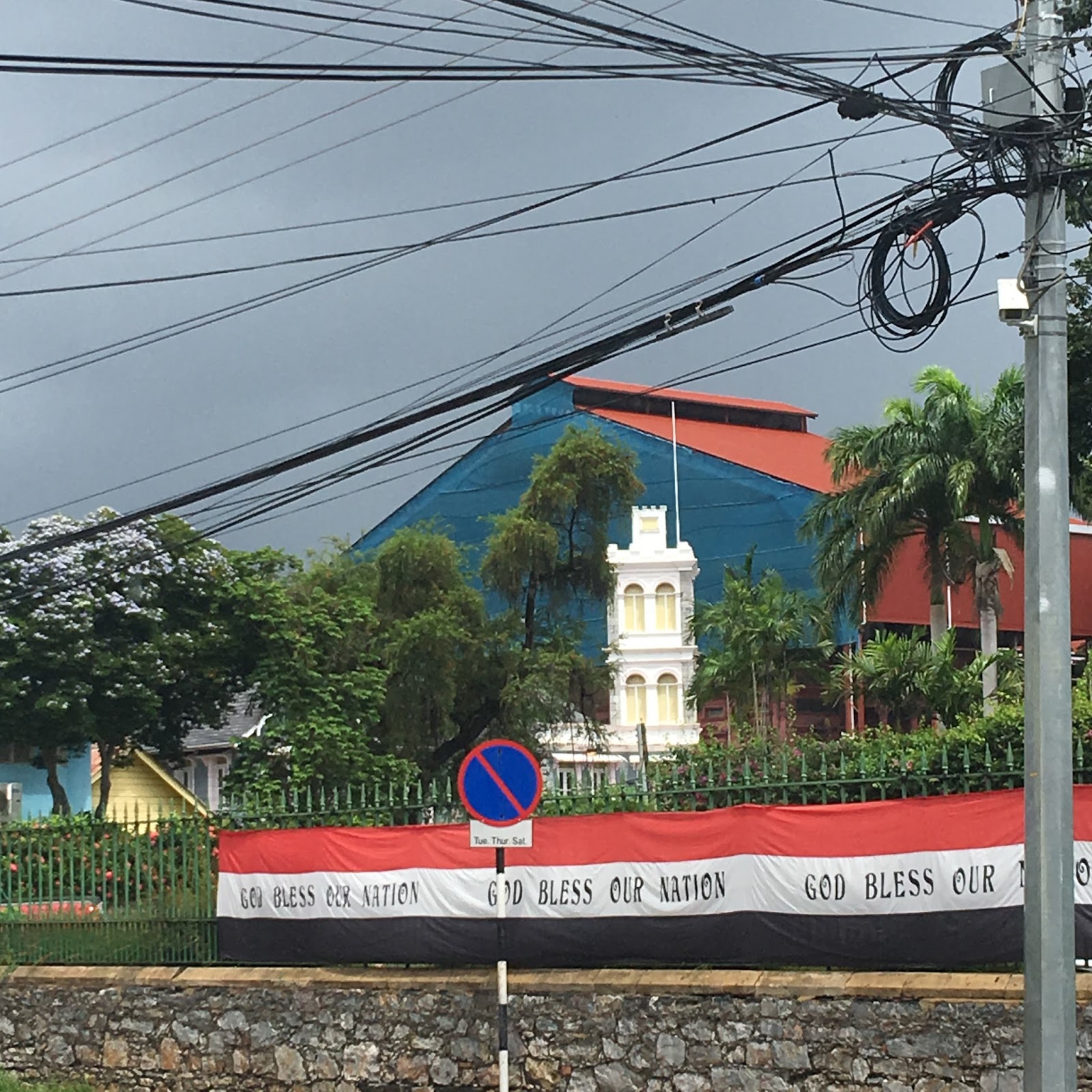 Originally a mangrove swamp, Port of Spain is now the second-largest in the Caribbean, after Kingston in Jamaica. Construction is going on everywhere, like in downtown San Francisco but on a smaller scale. Above-ground wire tangles are reminiscent of those in China and on my own residential street in California.