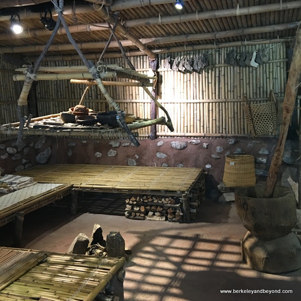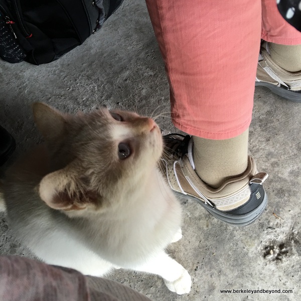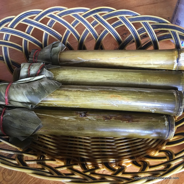 Dageeli Tribe House Restaurant 03-862-1033. That the owner of this restaurant featuring creative traditional Truku cuisine is an artist is apparent. His art work is displayed throughout and for sale. Also, his rustic wood pieces are used for tables and benches in the restaurant, where the expansive dining room opens to a view of the not-too-distant ocean. Special aboriginal foods on the menu include wild vegetables, bracken, cinnamon pig, and bamboo rice that is cooked in a covered tube of bamboo that is popped opened by noisily whacking it against a post. Pieces of delicious roasted chicken with skin is memorable. Cats have free roam, and are quick to dispense with leftovers on abandoned plates. Several gift shops sell works by the artist owner as well as by a weaver who demonstrates her skills on the spot.