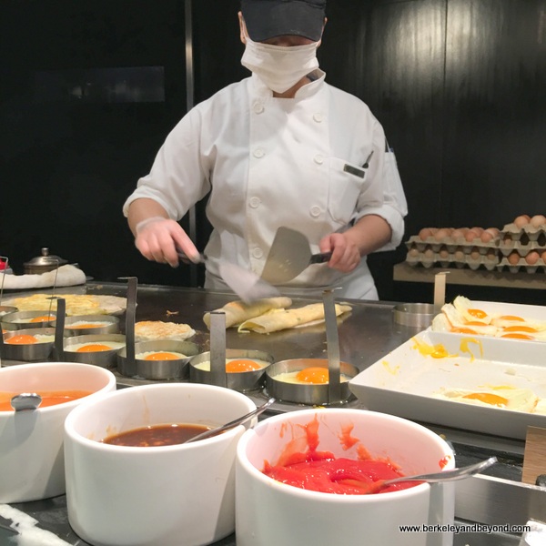 Sarabeth’s Upper East Side ((212) 410-7335. B-L-D daily, SunBr; $$. is downstairs off the hotel lobby. The kitchen serves up fabulous breakfasts, including eggs Benedict and a cheese omelette with gruyere that are especially delicious, and lunches are good, too. Pastries are scrumptious—I love the light but tall English muffin, though most recently it was disappointing. This place is famous even on the West Coast for their delicious jams (don’t miss the peach-apricot and plum-cherry). The upstairs loft area has appeared in TV’s “Housewives of New York City,” but I prefer sitting in the airy main dining room downstairs. Most recently, the whole experience here has been a little rough around the gilded edges in the form of boring presentations and slow service. Still, it is worth a meal here, even if you don’t stay in the hotel, or at one of the other locations around town. Another Sarabeth’s is in Tribeca.