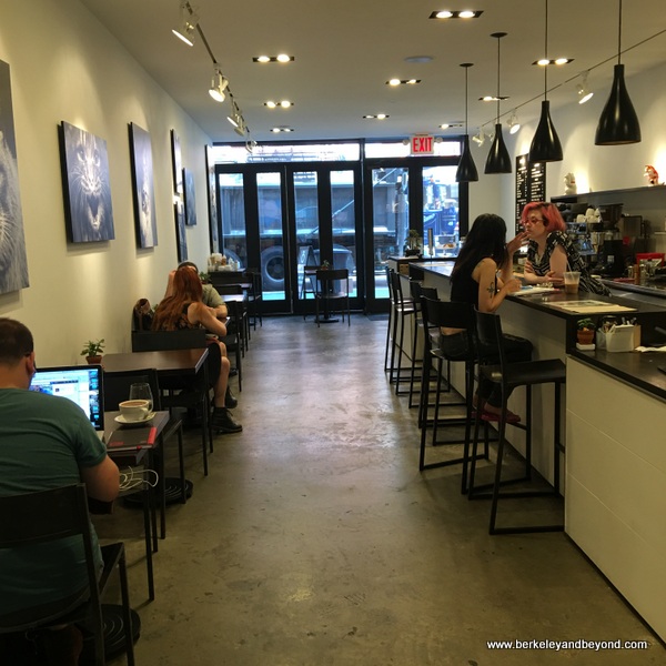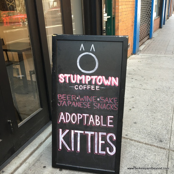 Koneko 26 Clinton St./Houston St., Lower East Side, (646) 370-5699. This cat cafe is a branch of one in Japan. It is appropriate that it is named “Koneko,” which means “kitten” in Japanese. The coffee is Stumptown, and the pastries, which include many Japanese izakaya classics, come from Patisserie Tomoko in Williamsburg (the seafood and pork belly okonomiyaki sell out every day). You can sit in the cafe and observe the kitties through a large window, or you can take your order into the cattery room and visit with them for an hour (the fee is $15, and a reservation is required at busy times). An upstairs room with an outside “catio” is also available. You will need to take your shoes off when you enter the cattery and will be provided with slippers to use. All cats are available for adoption, and all proceeds benefit the cats.