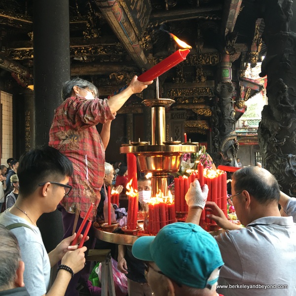 When I visited, the exterior was lined with hundreds of yellow lanterns, and the courtyard was filled with lantern decorations that were part of the Taiwan Lantern Festival extravaganza.
