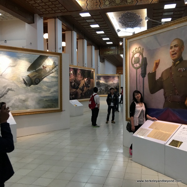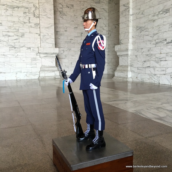 National Chiang Kai-shek Memorial Hall No.21, Zhongshan S.Rd., Zhongzheng Dist., 886-2-2343-1100. Daily 9am-6pm. Situated in the heart of Taipei, the main hall here, built in 1980, is dominated by a large bronze statue of Chiang Kai-shek. It is reminiscent of the Lincoln Memorial in Washington, D.C. Inscriptions on the wall above and behind the seated figure are the Chinese characters for Ethics, Democracy, and Science--considered the Three Principles of the People. Grey marble in this hall is from Taroko National Park, and white marble is from the U.S. Time your visit to see the impressive changing of the guards. The large crowd quiets for the ceremony, but once it is done the echoing in the gigantic chamber is very loud. Guards are not supposed to blink, but I did, indeed, catch one blinking, though, unfortunately, not on camera. A museum with some interesting historical paintings is situated on the first floor.
