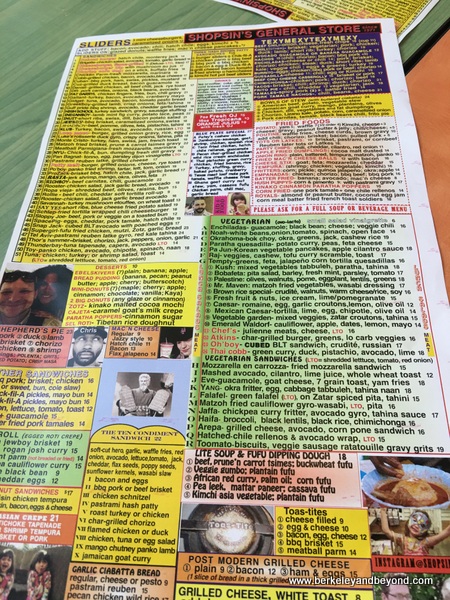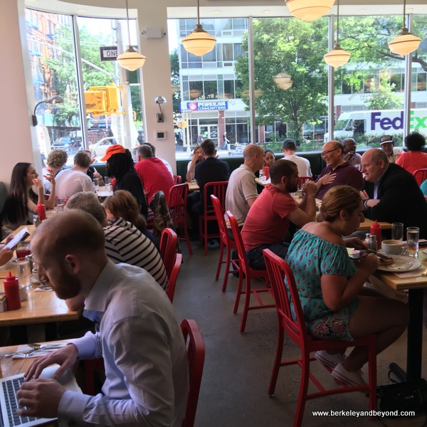 Shopsin's General Store 120 Essex St./betw. Rivington & Delancey sts., in Essex Street Market at southwest end, stall #16, (212) 924-5160. W-Sat 9am-2pm, Sun 10am-2pm; $$-$$$. No reservations. Cash only. A while back at the Jewish Film Festival in San Francisco I happened to see a quirky little film titled “I Like Killing Flies,” which was about this very small NYC coffee shop with a very large menu (and many vegetarian options). My daughter lived around the corner of the second location on Bedford Street, so we had a blast visiting the restaurant in person, even though it wasn’t at the same location as in the movie. Owner Kenny hid there in the tiny kitchen, irritated to be recognized and asked for an autograph (you need to see the movie to understand how he cooks such a gigantic menu in such a small space). Now, at his third location, he usually still enforces the rules like something right out of a Seinfeld episode (think soup nazi): no talking on cell phones (I did get away with keeping my phone out on silent to take pictures--this former no-no seems to be ok now--but I did also get looks from the waiter); no groups larger than four; minimum one meal per person; no outside beverages; no substitutions; no take-out. Bottom line is portions are huge and the food is always exceptional, but don’t you be in a hurry.