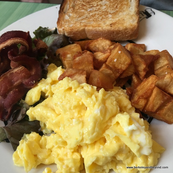 Pancakes with warm maple syrup seem to top the list of what to order, and the blueberry version is delish.