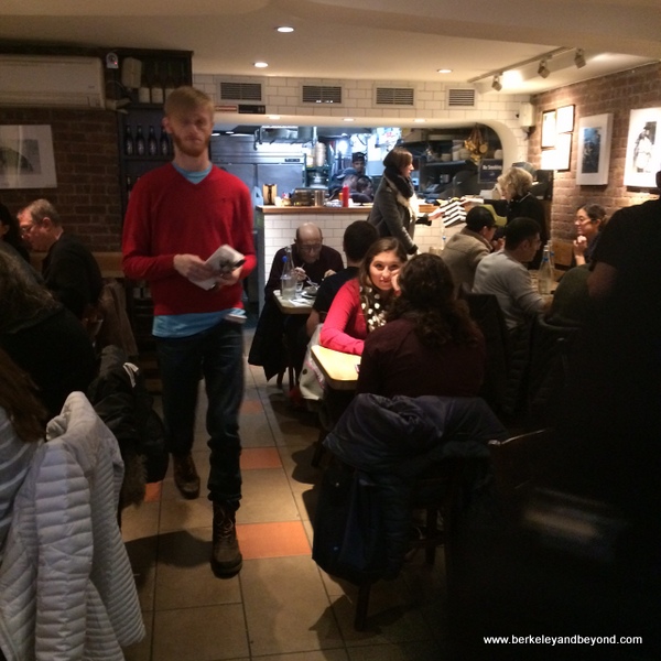 Persepolis 1407 2nd Ave./73rd St., Upper East Side, (212) 535-1100. It is fun here to make a meal of appetizers and salads. The flavorful Persian food includes Eggplant Mirza (a roasted puree with mint, tomato, garlic, and yogurt), refreshing Yogurt & Shallots, and Shirazi Salad (chopped cucumber, tomato, and parsley). Since I was with a vegan I shared Khorest Ghormeh Sabzi (a green vegetable and red bean stew) and Khorest Gaimeh Badamjan (a split pea, eggplant, and tomato stew). But what I really wanted was the Khorest Fesenjan (chicken with pomegranate and walnuts). However, our veggie items were served over a sour cherry rice and a dill-fava bean rice and were very tasty. I was here for a late lunch, so there weren’t many people dining then, but a man seated nearby was someone I recognize from PBS—but darned if I can remember his name or role, though I think it was a mystery.